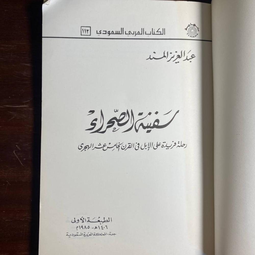 اسم الكتاب:سفينة الصحراء اسم الكاتب:عبدالعزيز المسند دار النشر وتاريخ النشر: الكتاب العربى السعودى ١٩٨٥عدد الصفحات:١١٧A.3